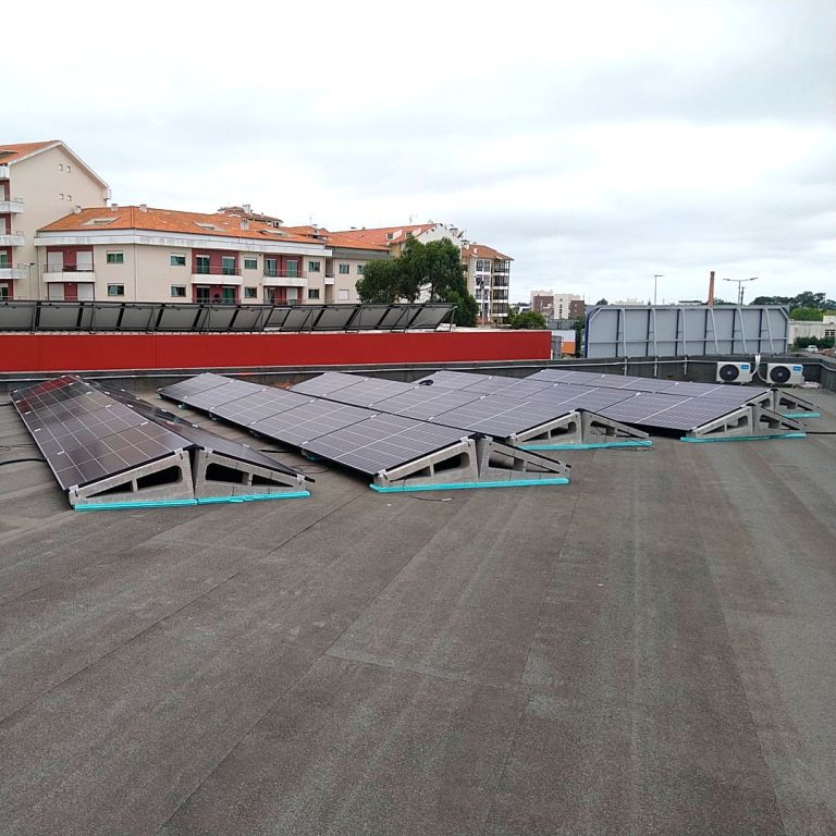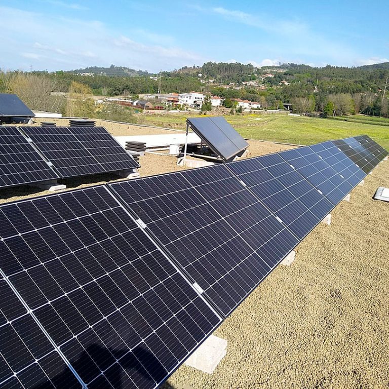 Esta instalação é composta por 50 módulos fotovoltaicos monocristalinos com potência unitária de 450 Wp, uma potência pico de 22,5 kWp e potência nominal de 20 kWn.