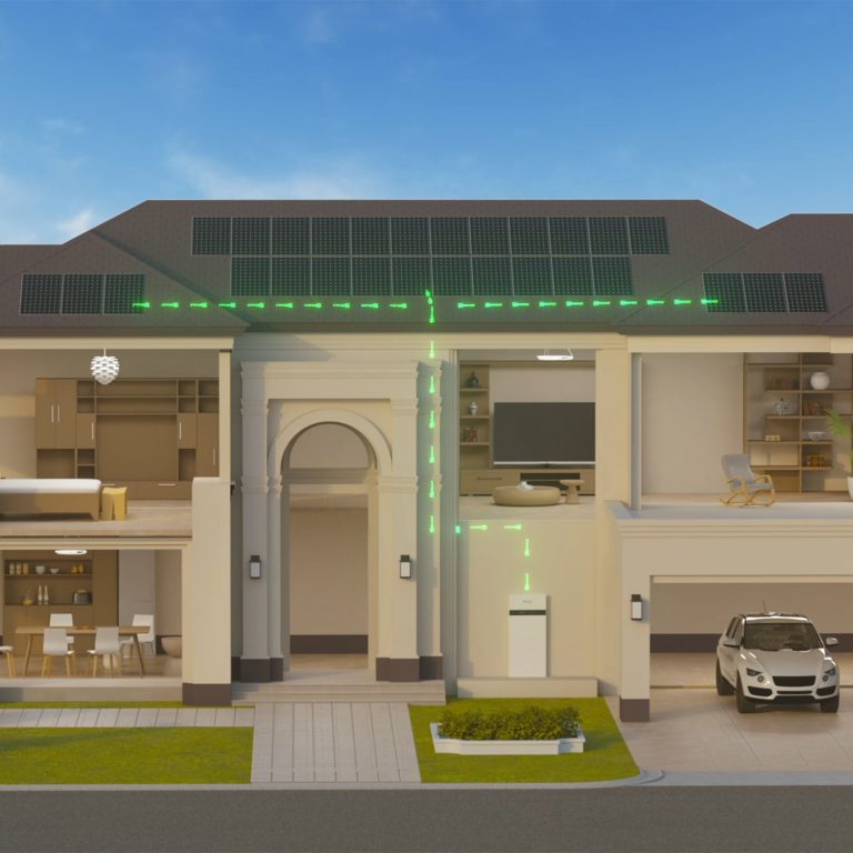 O IES é um sistema de armazenamento de energia composto por vários módulos, onde integra um inversor híbrido de 2,5 a 8 kW, BMS e módulos de bateria extensíveis, variando de 5 kWh a 20 kWh.